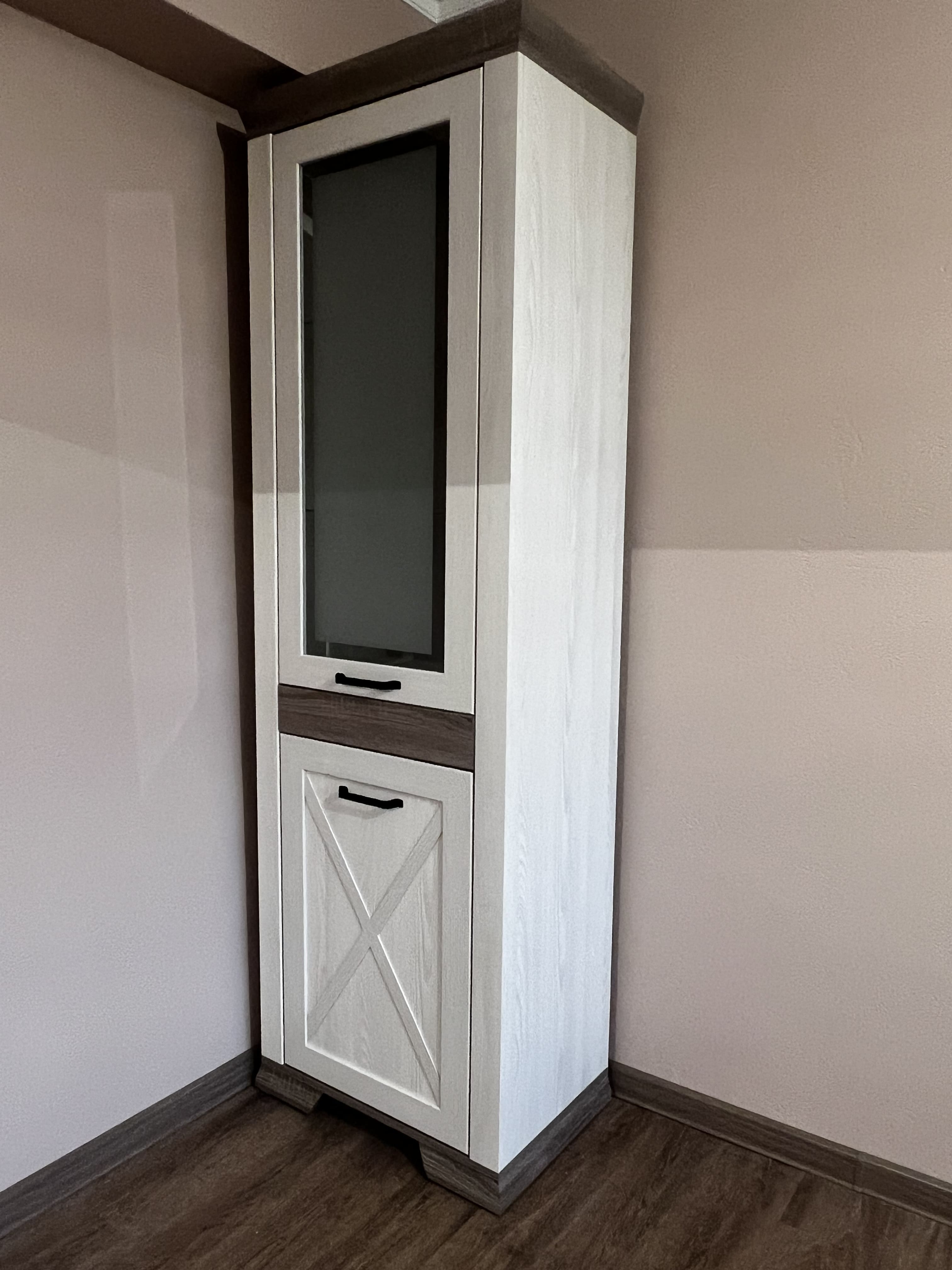 Светлые фасады со шпросами, кованные черные ручки, массивные карнизы темного дерева – все это смотрится очень элегантно и аутентично.