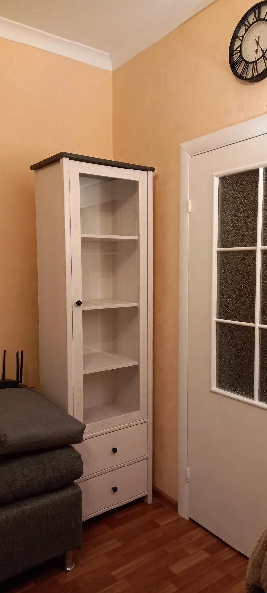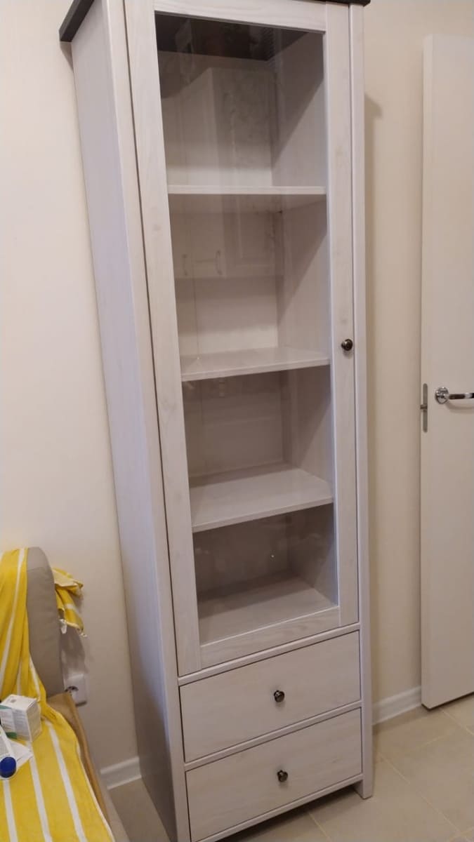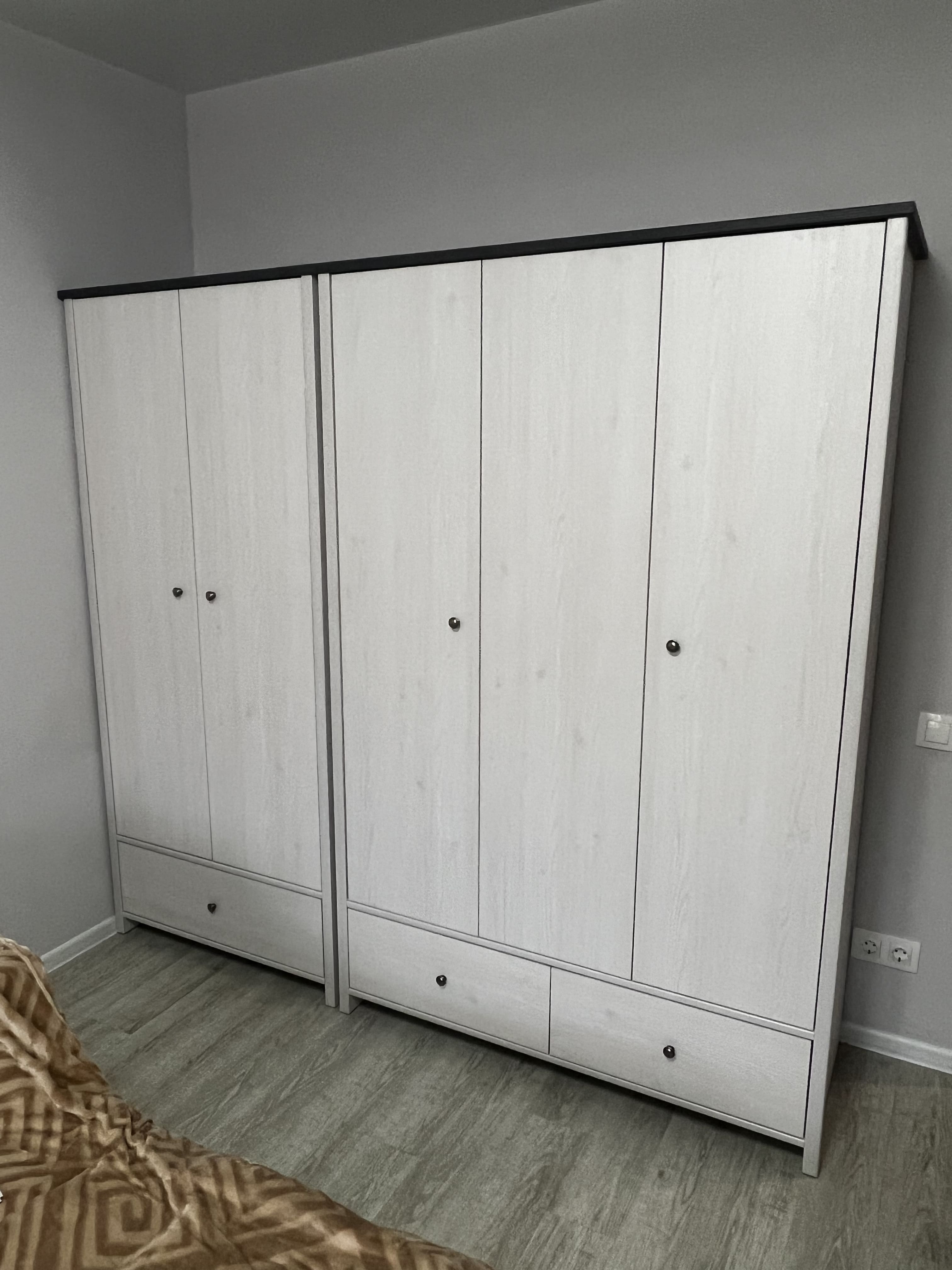 Светлые цвета корпуса и фасада в сочетании с тёмным цветом верхних щитов в цвете Сосна ларико создадут уютный интерьер в скандинавском стиле. Разнообразие элементов мебели по размерам и функциональности позволит Вам оформить стильную гостиную.