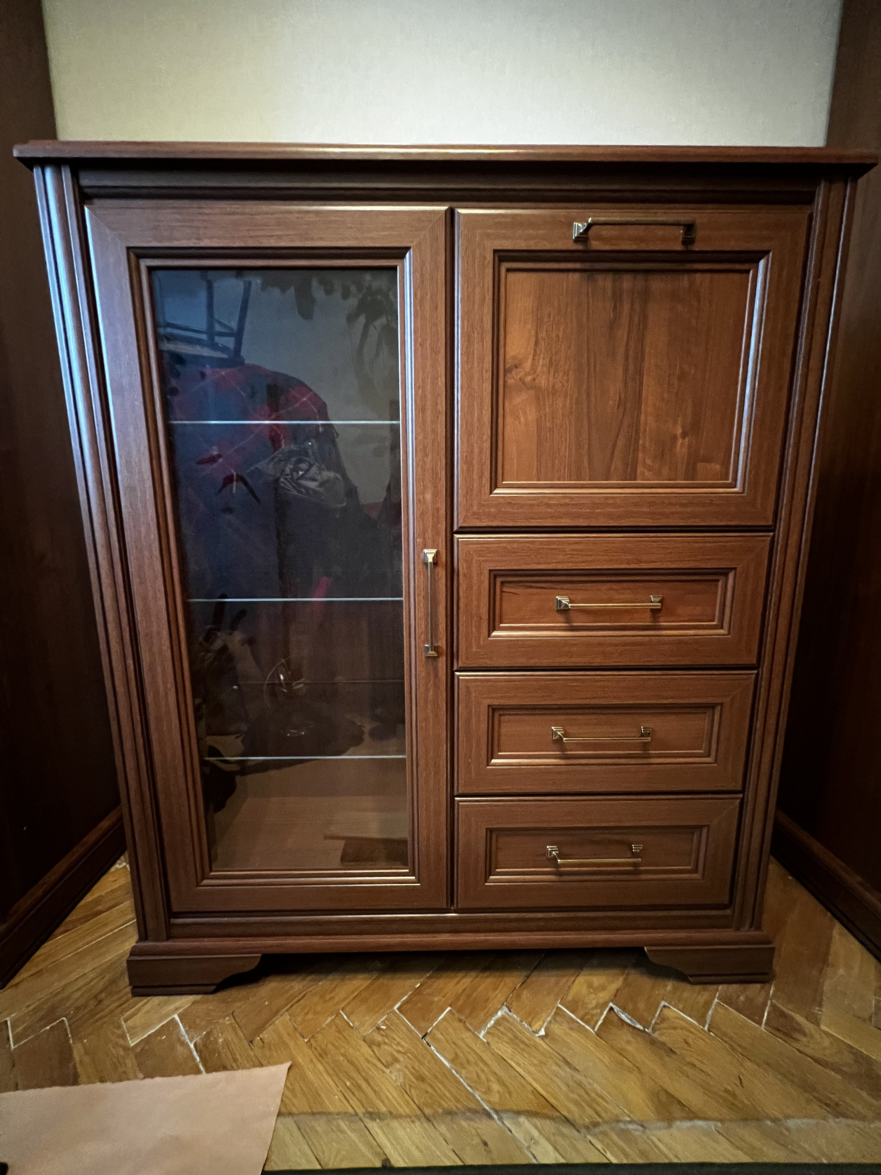 Декоративные карнизы и ножки, изящные патинированные ручки и выраженный древесный рисунок соответствуют лучшим традициям неоклассики. А благородный насыщенный цвет ореха донского подчеркивает декоративные детали и создает атмосферу достатка и уюта.